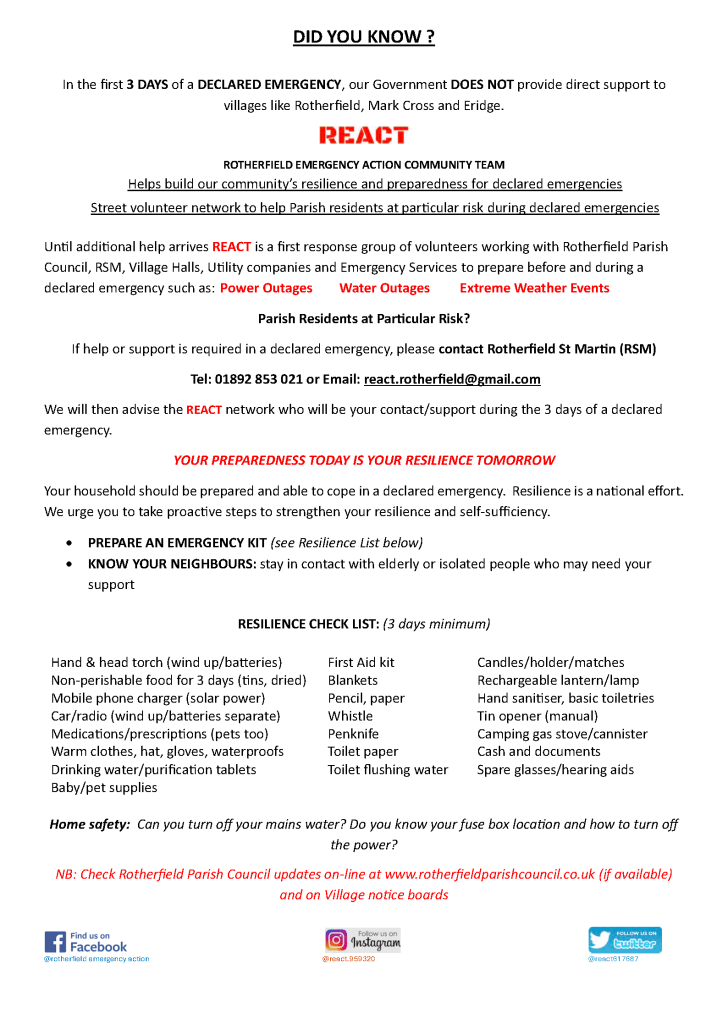 REACT & Emergency planning Rotherfield Parish Emergency Action Plan Rotherfield Parish Council – Emergency Response Strategy Share this: Share on X (Opens in new window) X Share on Facebook (Opens in new window) Facebook Like Loading...
